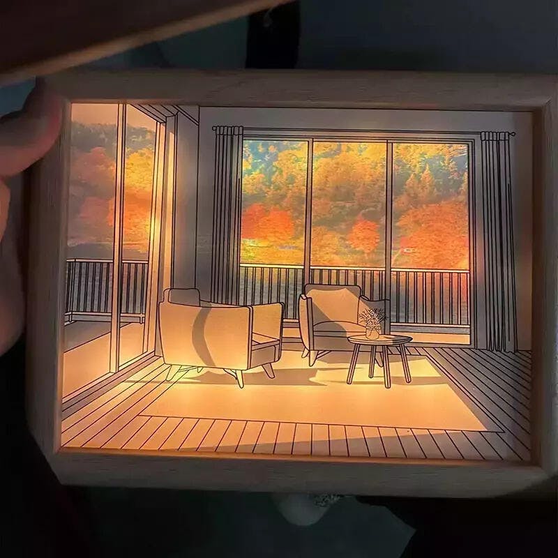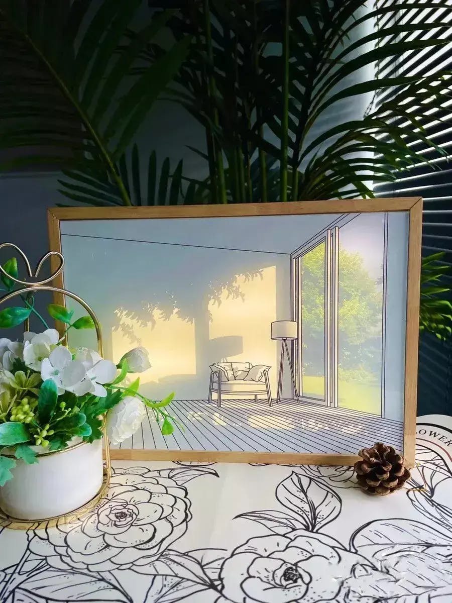 Immerse yourself in the tranquil ambiance created by these ethereal illuminated artworks. Transport yourself to sunlit living rooms, autumn landscapes, or rooms with breathtaking sea or mountain views, creating moments of bliss and tranquility within your own walls.
