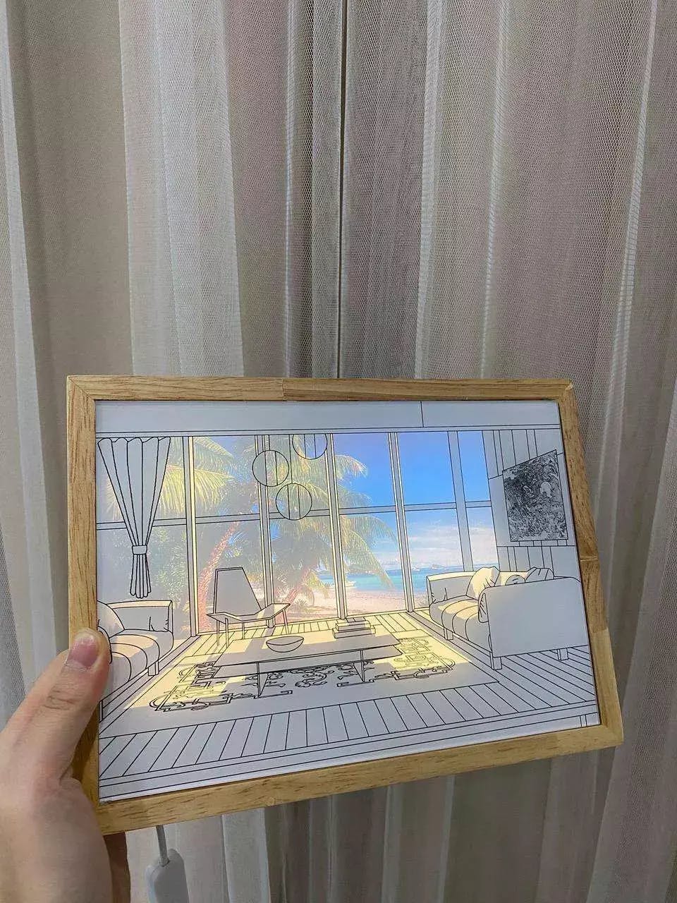 Prepare to be astounded by the artistry concealed within this unassuming painting frame. Delicately etched single-lined art adorns the surface, hinting at the scenes that lie beneath. Delight in the joy of art that remains hidden until you decide to illuminate it, creating an air of intrigue and beauty in your surroundings.