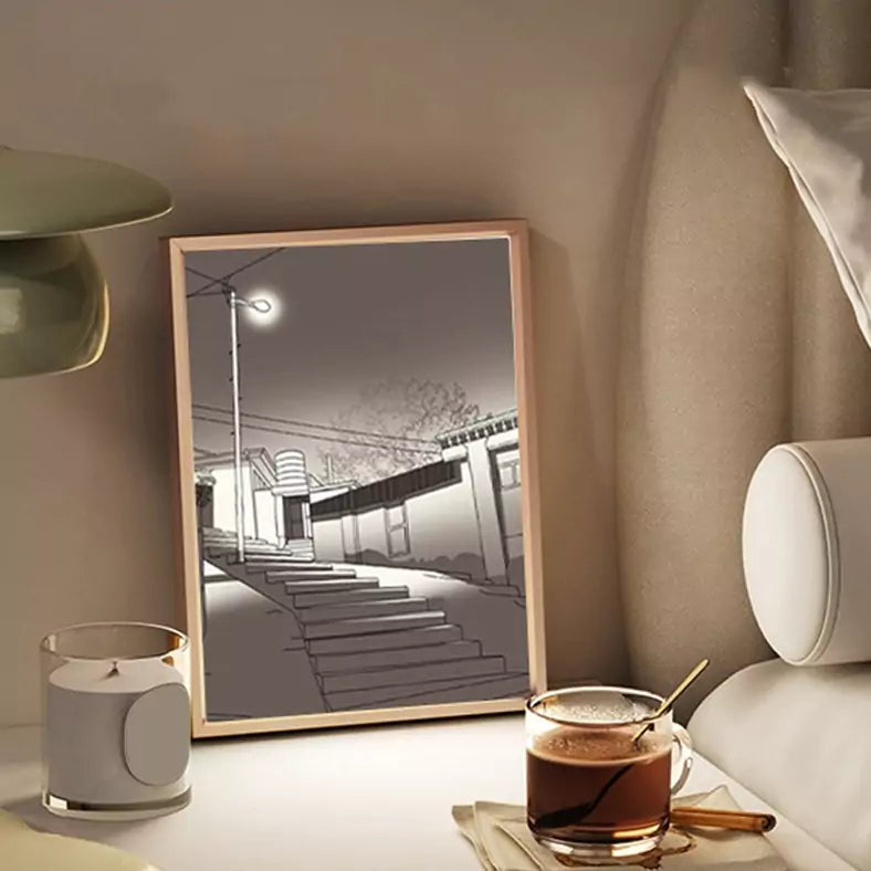 Prepare to be astounded by the artistry concealed within this unassuming painting frame. Delicately etched single-lined art adorns the surface, hinting at the scenes that lie beneath. Delight in the joy of art that remains hidden until you decide to illuminate it, creating an air of intrigue and beauty in your surroundings.